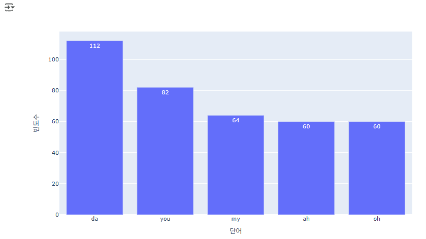 # 가사 뭉치에 단어를 추출하고, 단어의 빈도를 계산