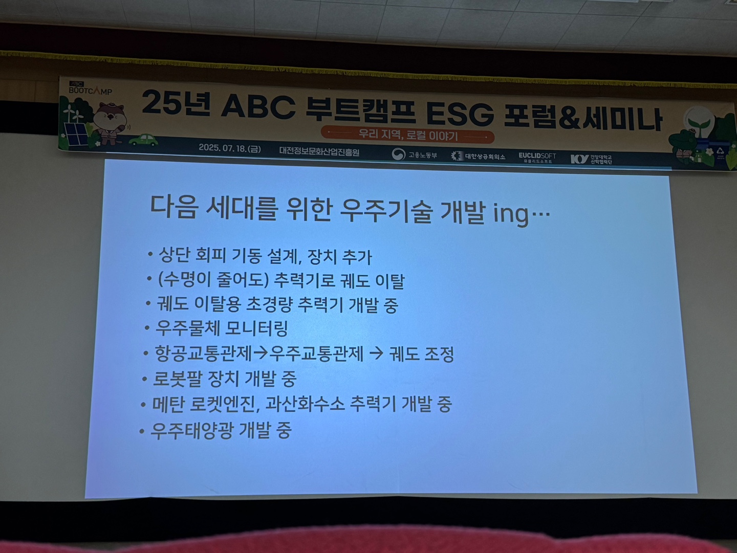 박사남께서는 “여러분이 잘 돼야 위성도 많이 만들고, 로켓도 자주 쏘게 된다”는 말을 통해, 결국 우주 산업의 마지막 퍼즐은 데이터를 활용하는 사람에게 달려 있다고 설명하였습니다.
